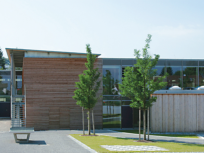 Быстро возведенное, на месте старого, современное здание гимназии. Инновационная система полимерной (ТПО) гидроизоляции BauderTHERMOPLAN и теплоизоляция для уклонов BauderPIR T надежно защитят учащихся от дождя и талой воды. |
