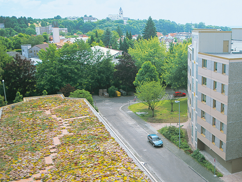 Капитальный ремонт семи жилых домов жилого комплекса «Hessischen Zahnärzte-Versorgung» на Берлинерском кольце в Келькхайме. Было произведено озеленение кровли и фасадов, т.к. девиз данного комплекса «Жизнь в парке». |